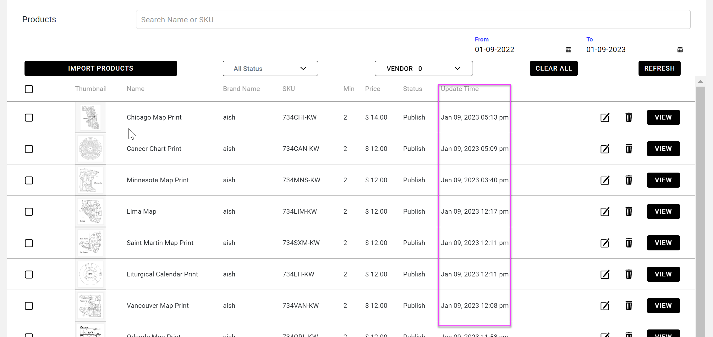 A column has been added to the Workdesk Product page to show the date and time of product loads and updates.