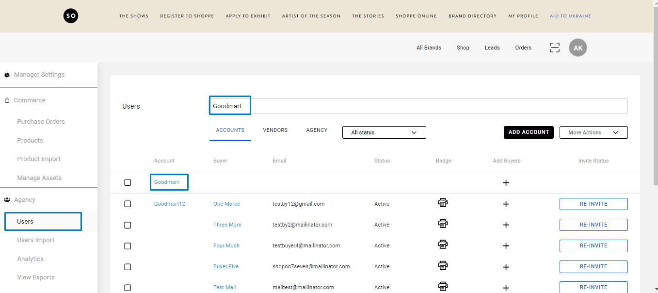 In order to add a credit card to an account profile, locate the account in the Users section of your Workdesk. You can use the search bar to search by name. Then click on the account name.